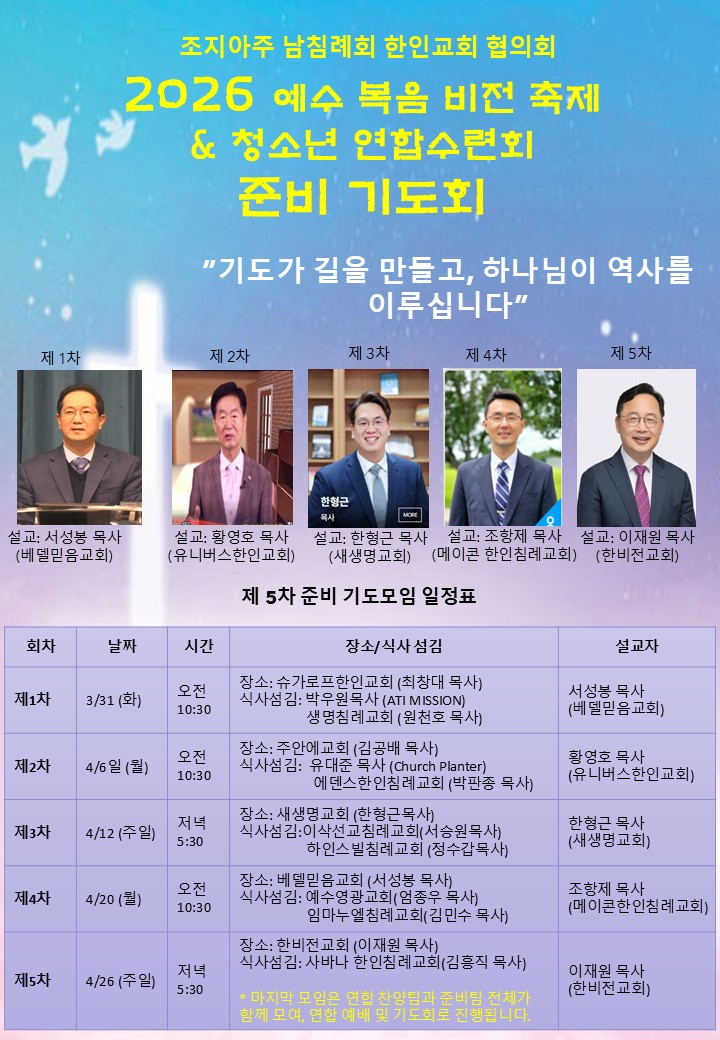 • 일시: 2026 5 1() ~ 5 3(주일) 저녁 7:00~9:00