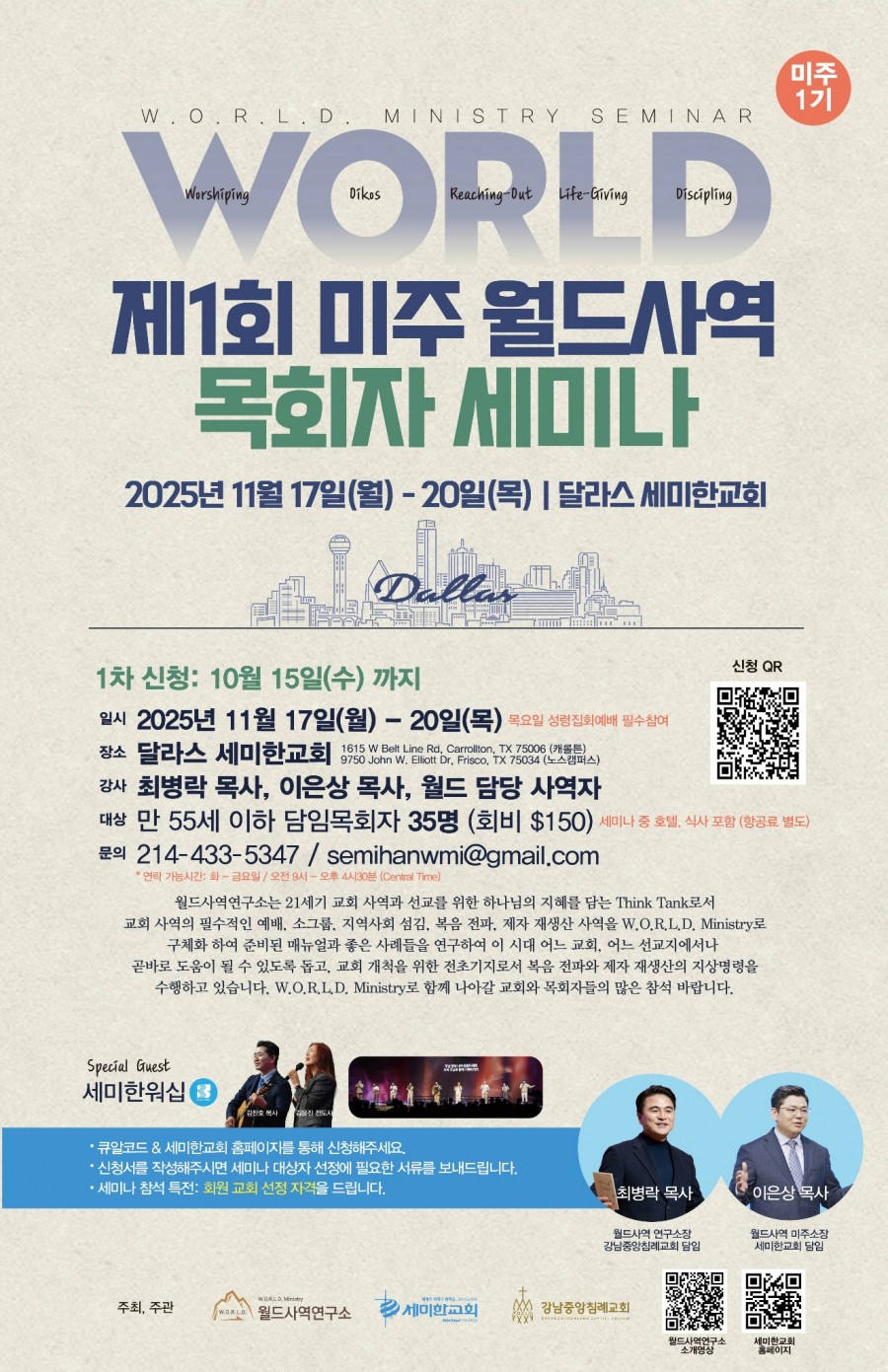 * 제1회 W.O.R.L.D. 사역 미주목회자세미나 신청하기