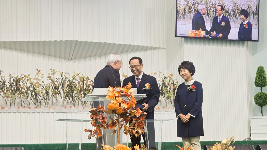 텍사스에 위치한 세계선교침례교회는 지난 1123(주일) 오후 4, 담임목사 은퇴 및 취임 감사예배를 은혜 가운데 드렸다. 이날 예배에서는 지난 21년간 제2대 담임목사로 충성스럽게 사역한 이근무목사가 은퇴하고, 오희영목사가 제3대 담임목사로 취임하는 뜻깊은 순서가 진행되었다.