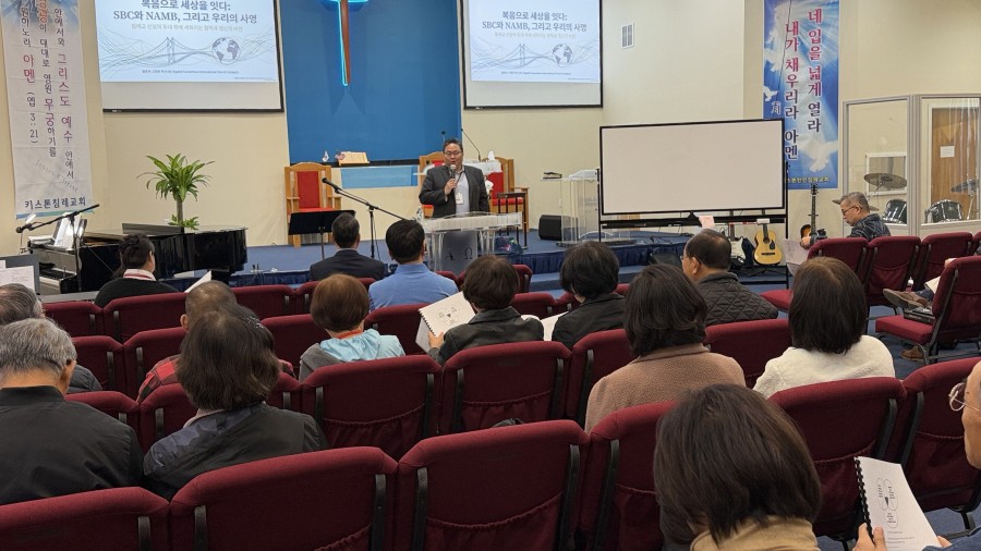 두 번째 강의에서는 남침례교 국내선교부(NAMB)의 교회 개척과 재활성화 사역을 중심으로 지역교회와 교단이 협력하여 하나님의 나라를 세워가는 선교적 동역의 비전을 나누었다. 특히 전도, 교회개척, 긍휼사역이라는 NAMB의 핵심 가치 아래, 한인침례교회가 미국 사회 속에서 감당해야 할 사명에 대한 실제적인 도전이 제시되었다.