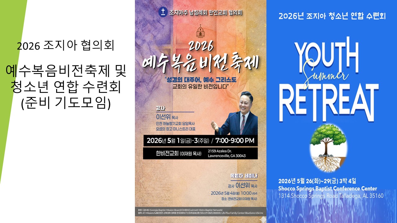 • 일시: 2026 5 1() ~ 5 3(주일) 저녁 7:00~9:00