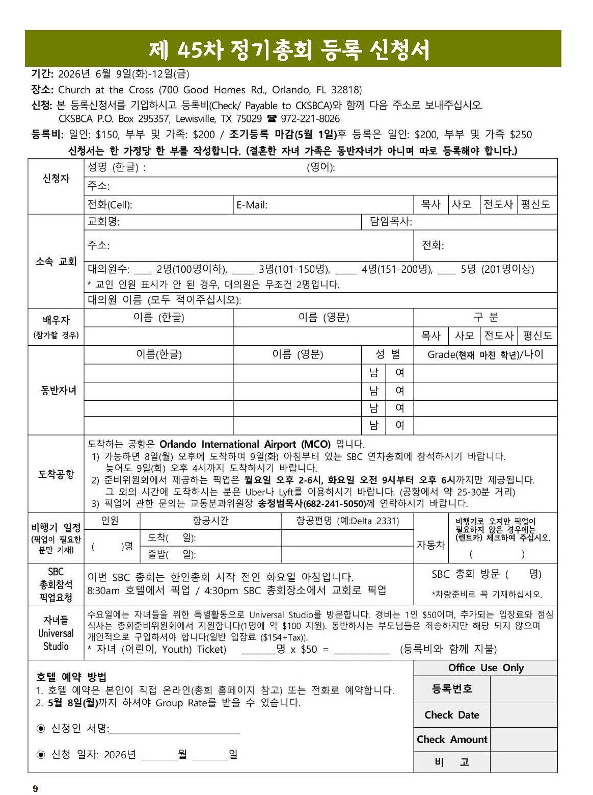 목회자 자녀 장학금 신청서