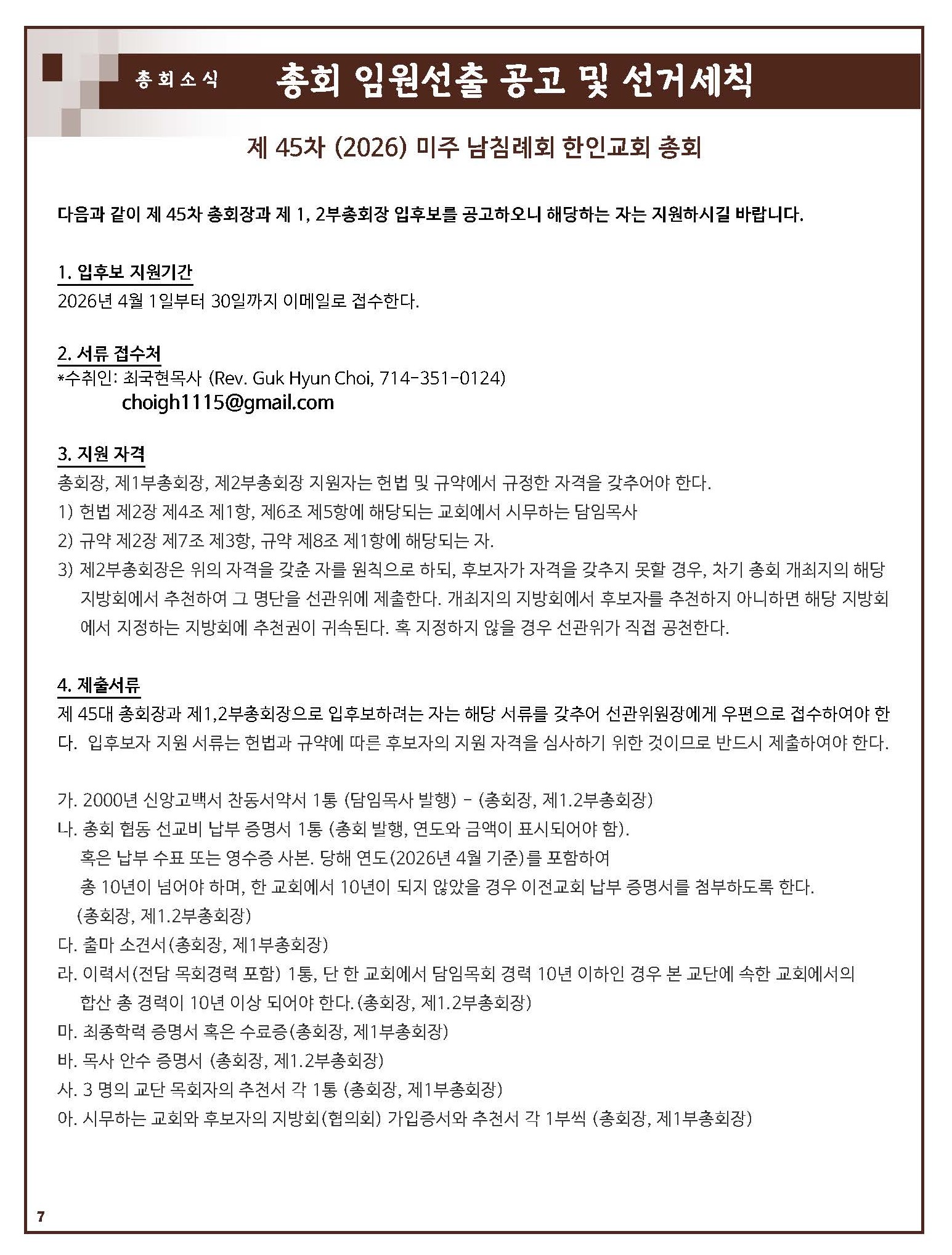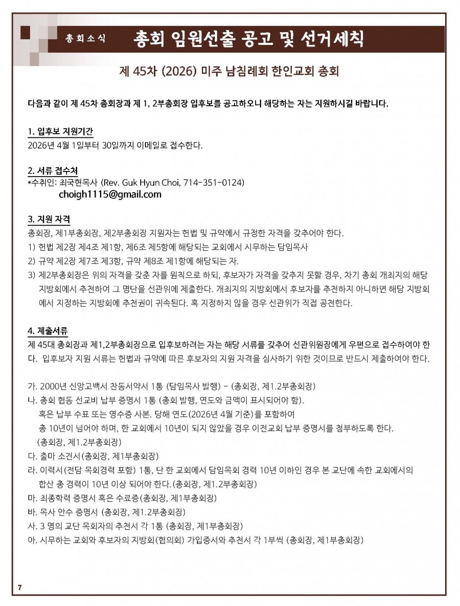 총회 임원선출 공고 및 선거세칙