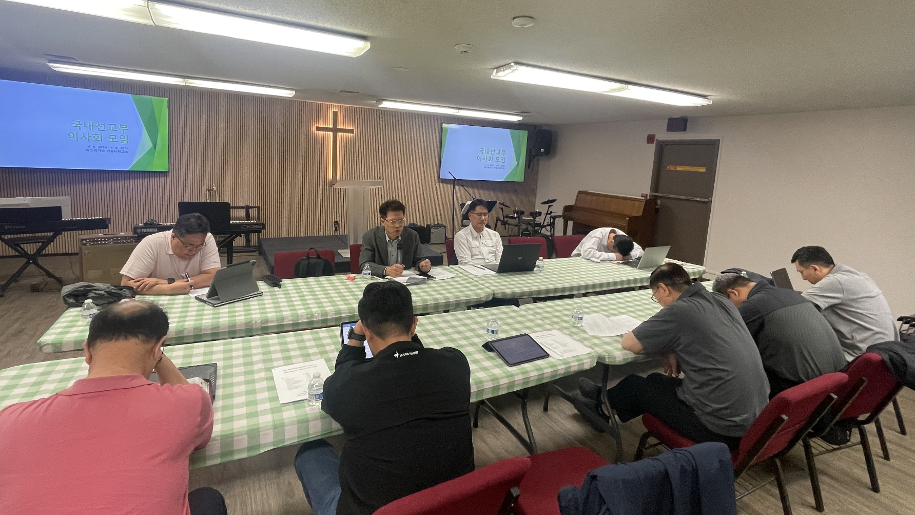 국내선교부 정기이사회가 202646일부터 8일까지 라스베가스 커뮤니티교회(이정환 목사)에서 있었다. 모임 장소는 라스베가스였으나, 달라스 주님의기쁨교회(유영근 목사)의 지원으로 호스트해 주셨다이번 이사회에는 10명의 이사들이 참석하였으며, 부득이한 사정으로 현장 참석이 어려운 이사들은 줌(Zoom)으로 회의에 함께 참여하였다.